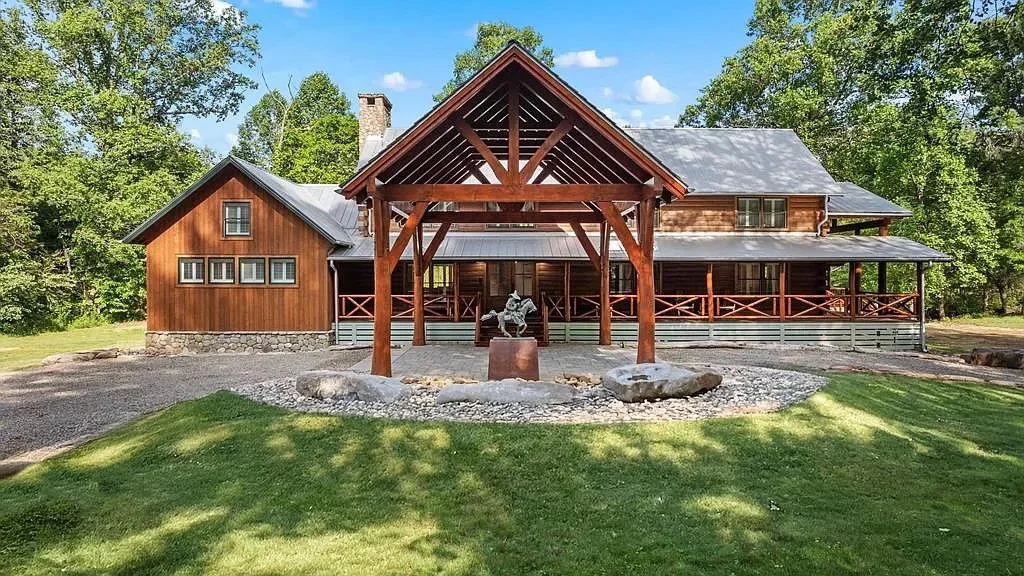 Set on 4.01 beautifully landscaped acres, the property features 3,309 sq. ft. of interior living space complemented by an additional 2,792 sq. ft. of covered outdoor areas, including a screened-in living room with a grand river rock fireplace. A timber-framed porte-cochere welcomes you home via a circular river stone driveway, setting the tone for the craftsmanship found throughout the residence.
